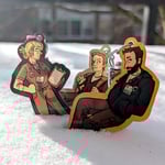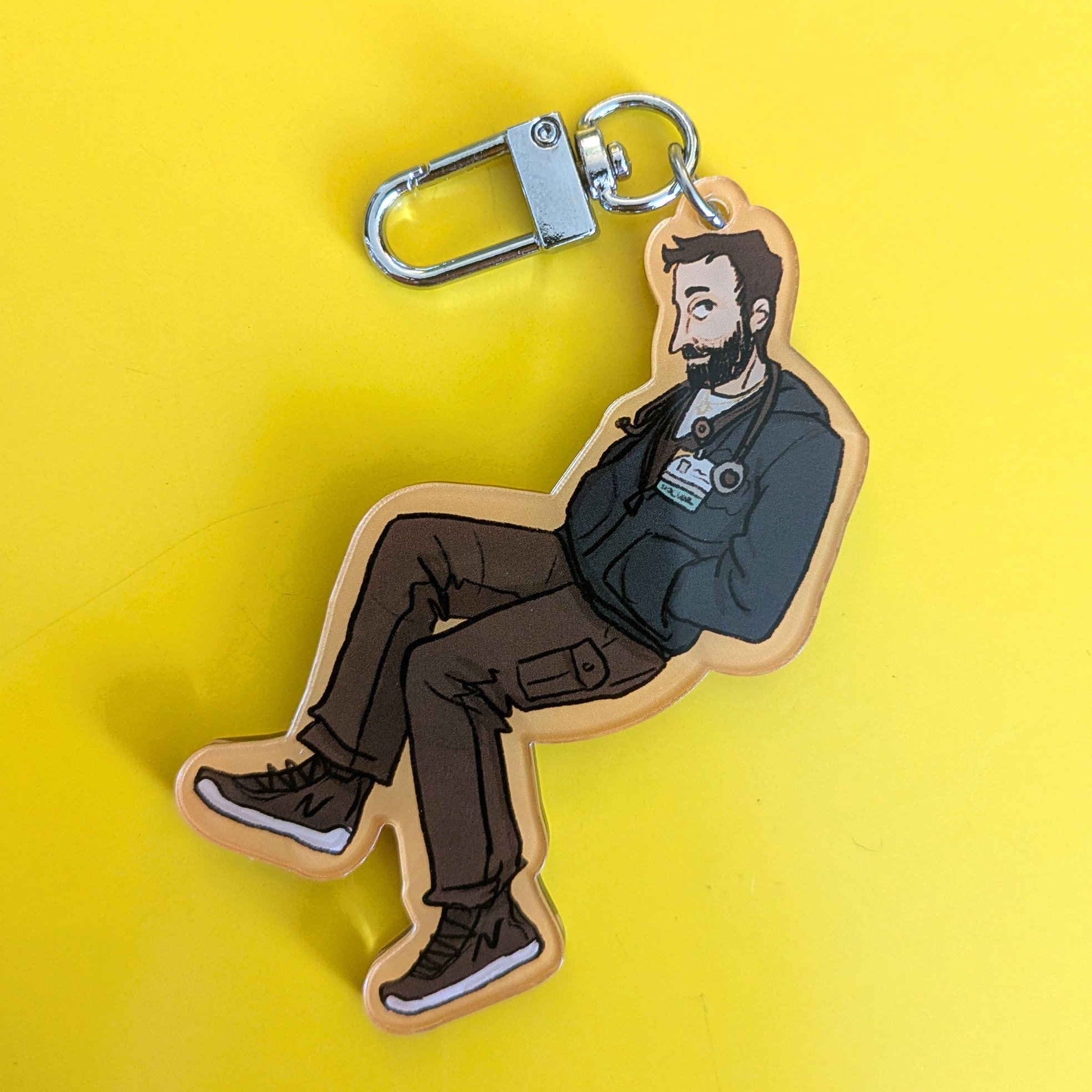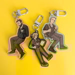 acrylic keychains featuring our favorite emergency gen X-ers. front and back are the same image, and they are approx 3.25 inches tall.